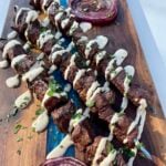 After 5 minutes, remove the grilled beef brochette off the grill, drizzle with some horseradish and
