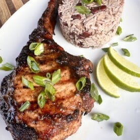 Remove the jerk pork chops off the grill and let them rest for 10 minutes before serving.